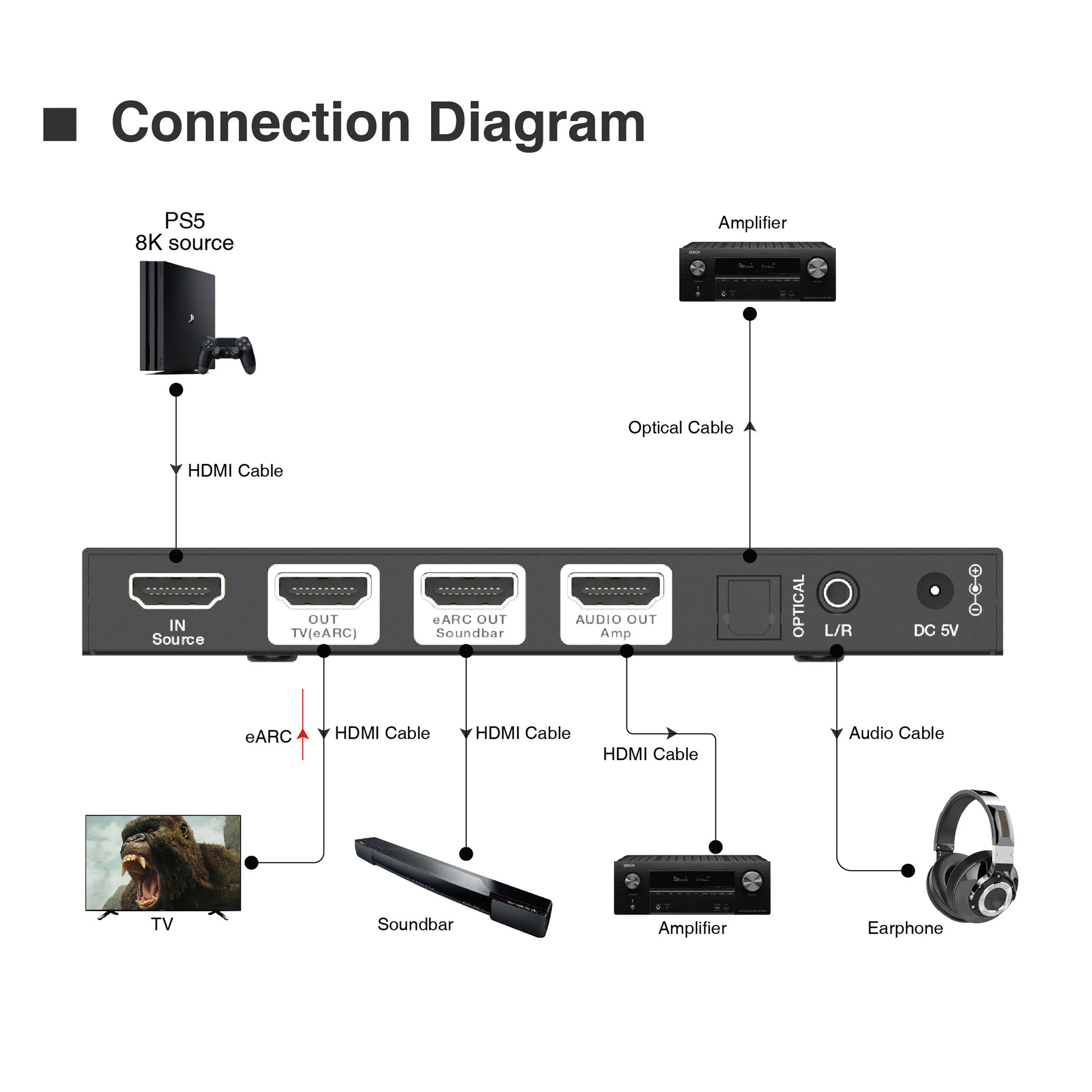 eARC Audio Adapter, 48Gbps Speed, 8K@60Hz Video Resolutions, Dolby Atmos, HDMI 2.1, HDR10+, CEC Control, EDID Management