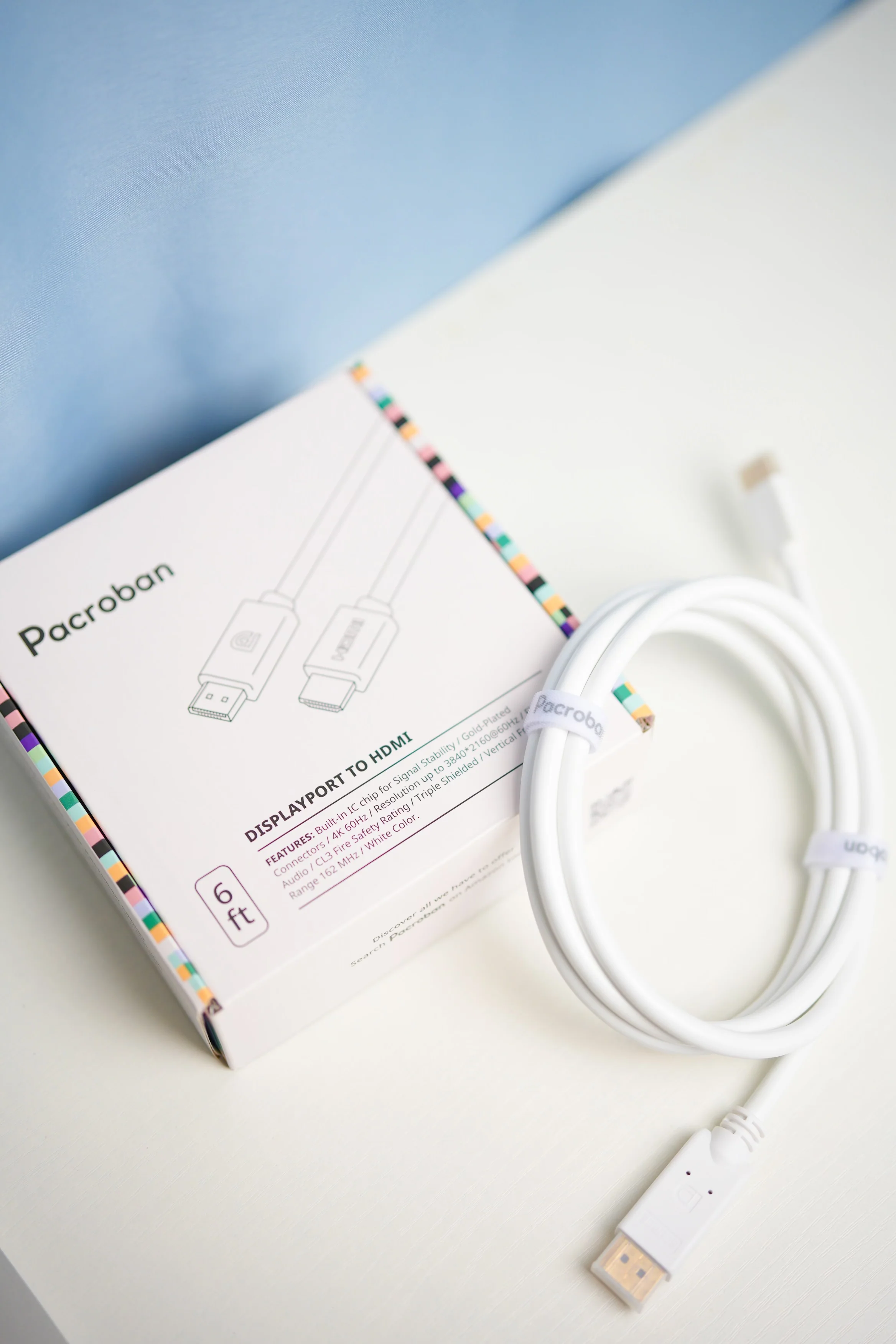 DisplayPort to HDMI Cable in White, Bidirectional Cable.Β